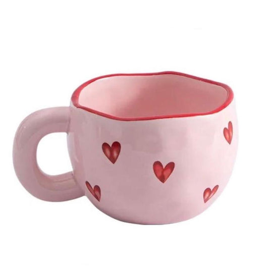 Pink Ceramic Love Heart Coffee Mug - Drinkware Cup