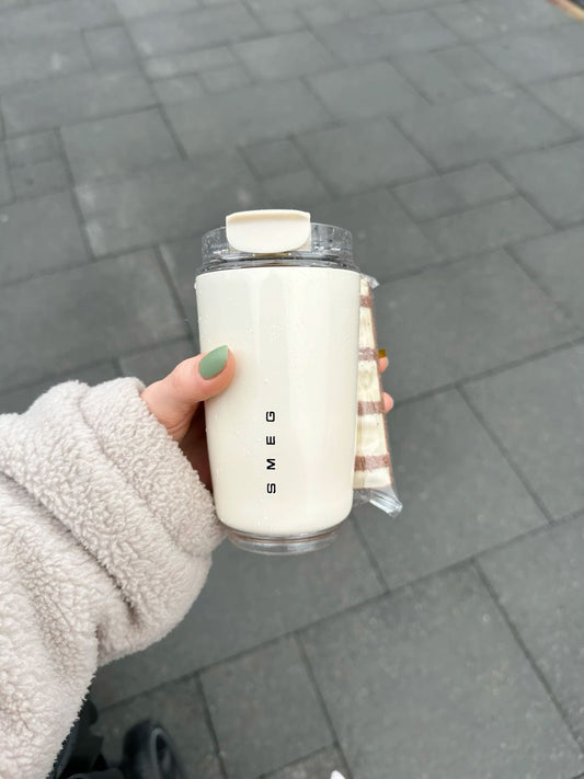 SMEG Insulated Coffee Mug | Stainless Steel with Lid| Lightweight Thermos for Travel