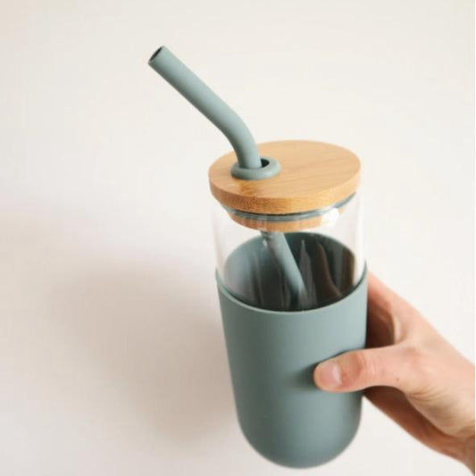 Glass Tumbler with Bamboo Lid & Silicone straw